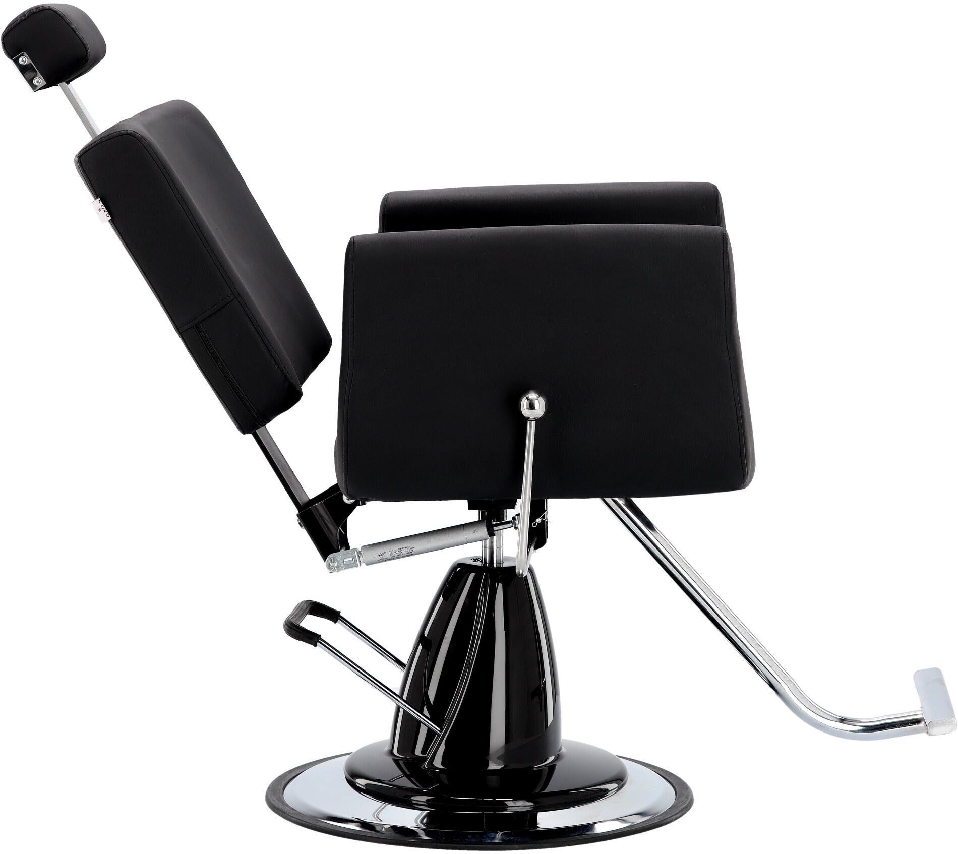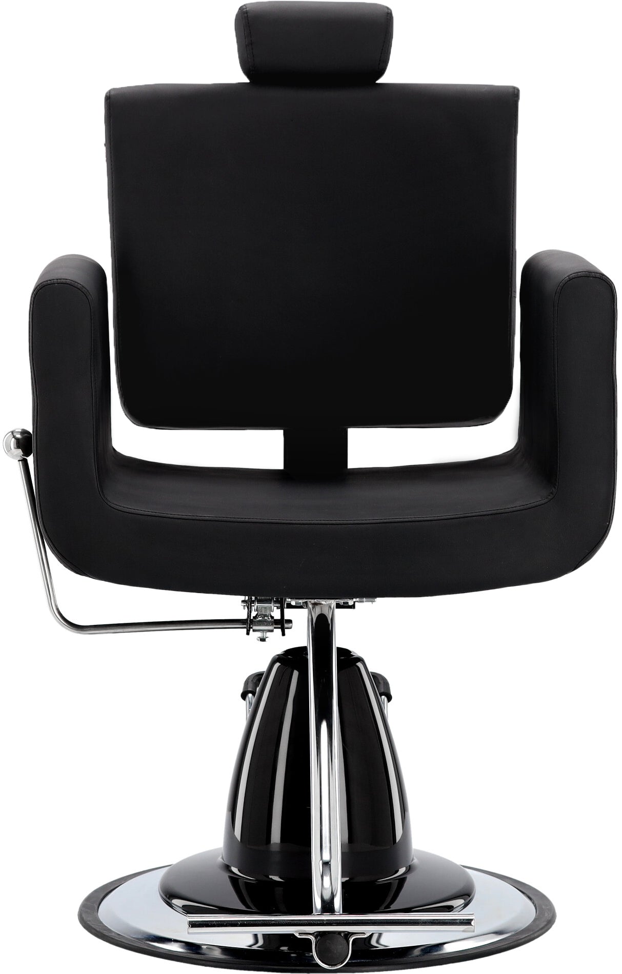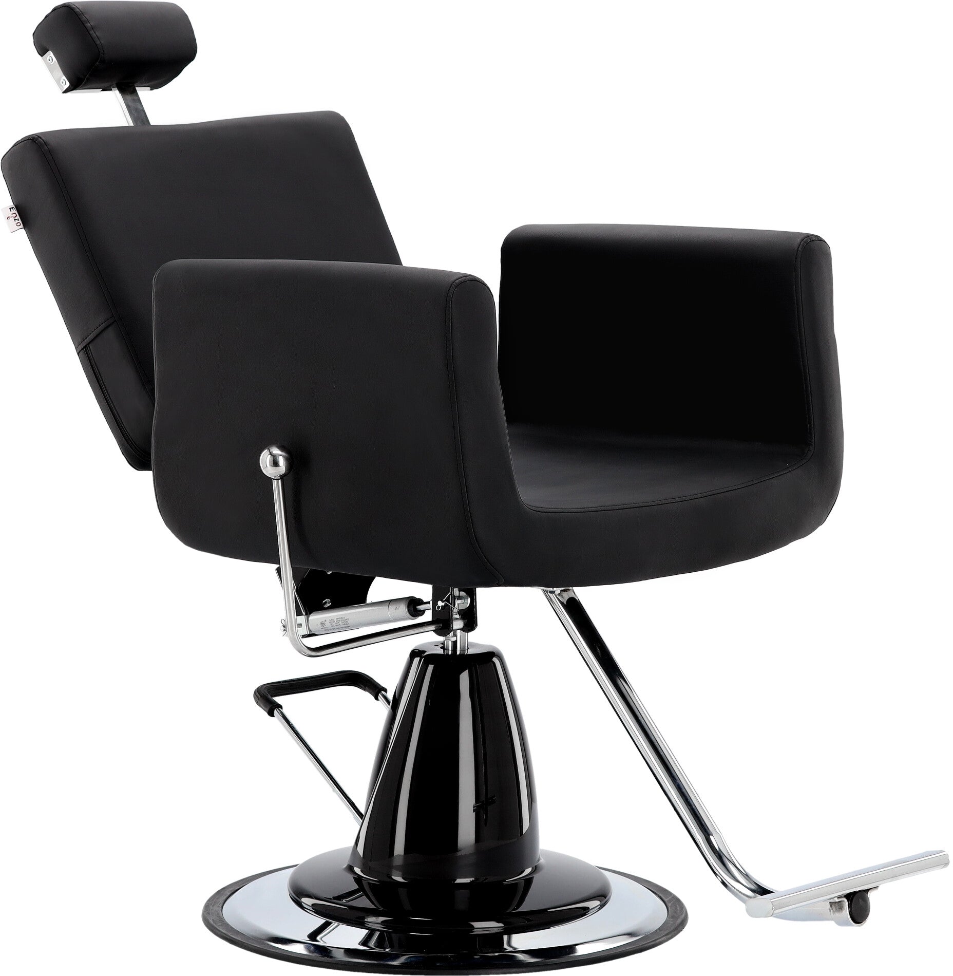 Stačiakampės formos atlošas užtikrina patogią nugaros atramą ir suteikia kėdei modernų bei elegantišką charakterį. Juoda apmušalų spalva puikiai dera su šiuolaikinių barber salonų interjeru.
