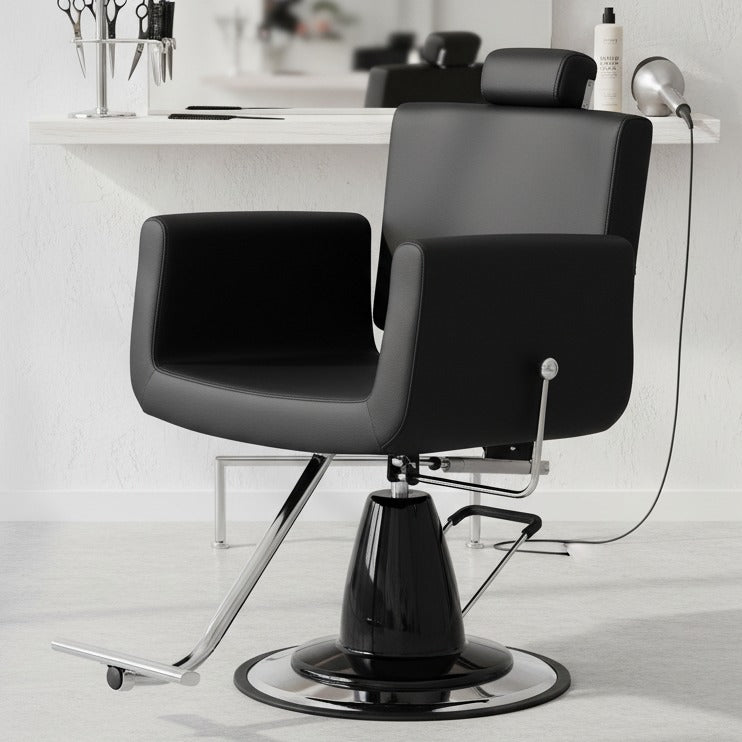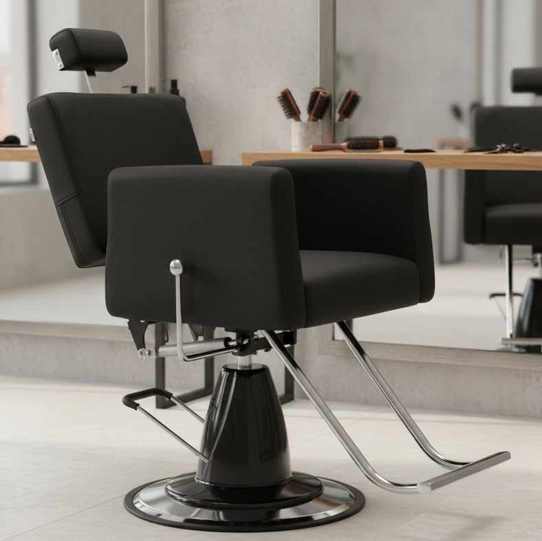 Ši barberio kėdė sujungia profesionalams reikalingą funkcionalumą su dizainu, kuris kuria salono prestižą.