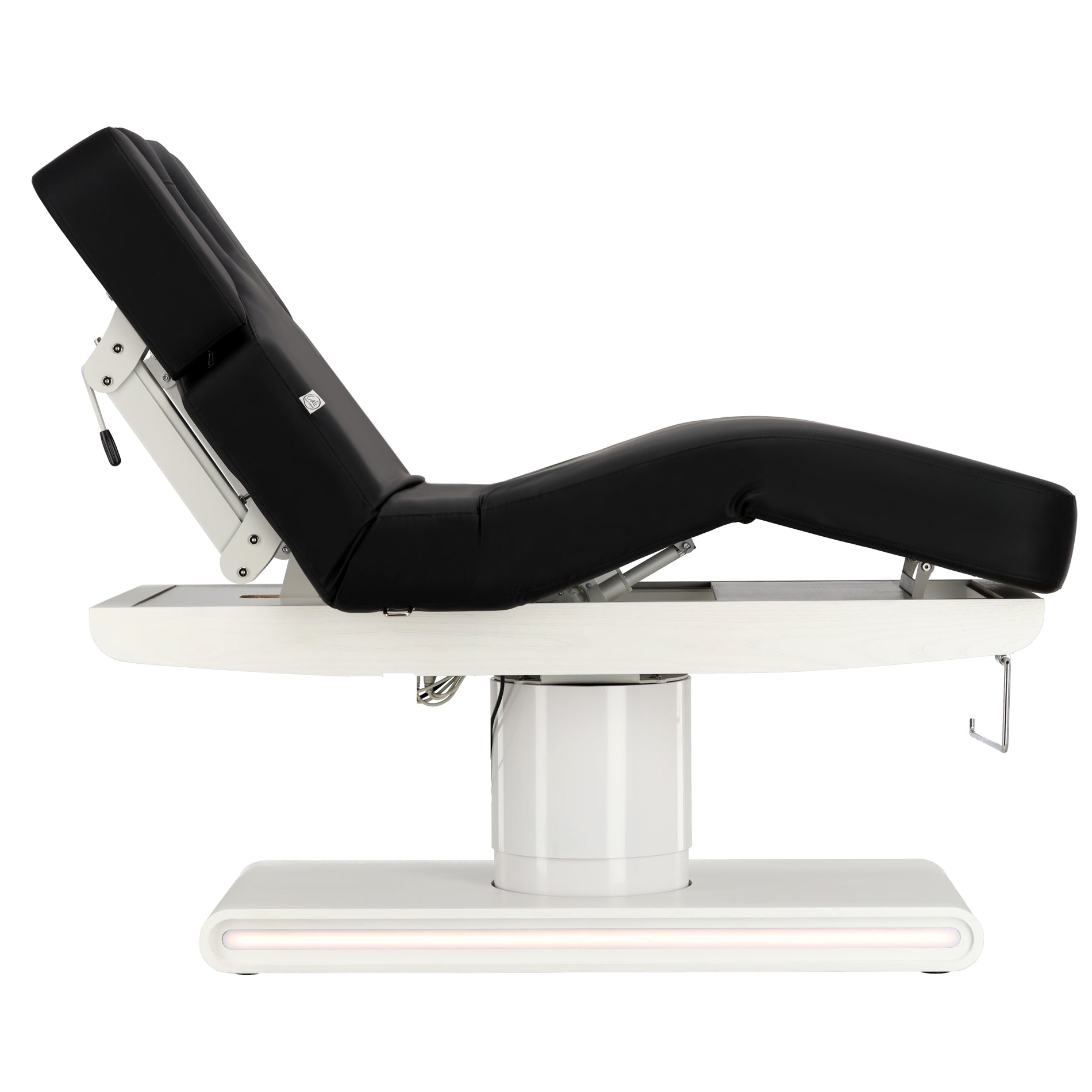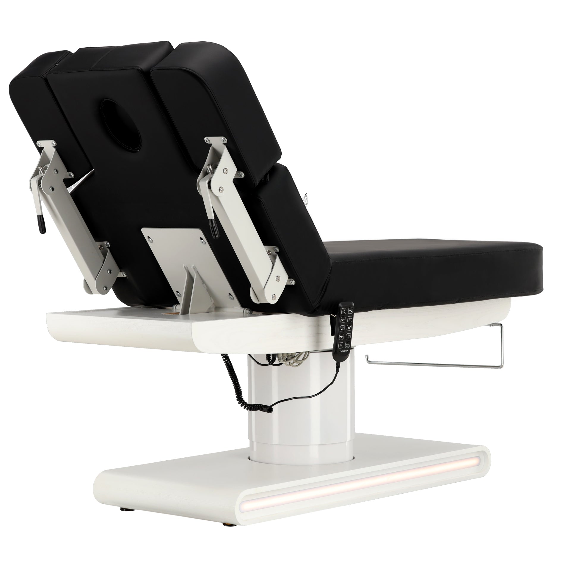 Nauja funkcija: pultelyje įdiegtas specialus mygtukas, leidžiantis vienu metu reguliuoti atlošą ir kojų dalį. Du varikliai veikia sinchroniškai, todėl per vieną judesį galima greitai ir tiksliai pakeisti abi zonas. Tai ženkliai pagreitina darbą kabinete ir didina procedūrų efektyvumą.