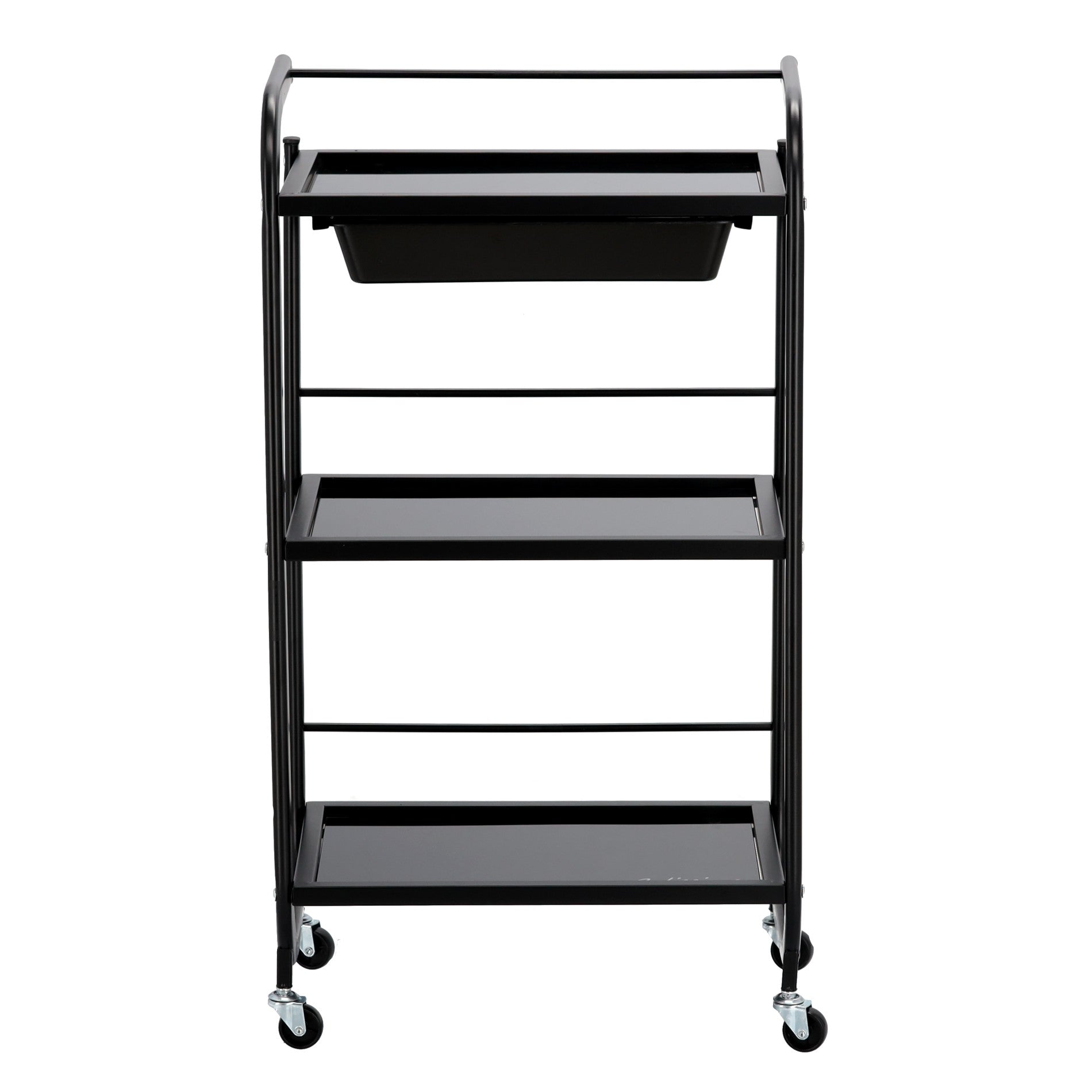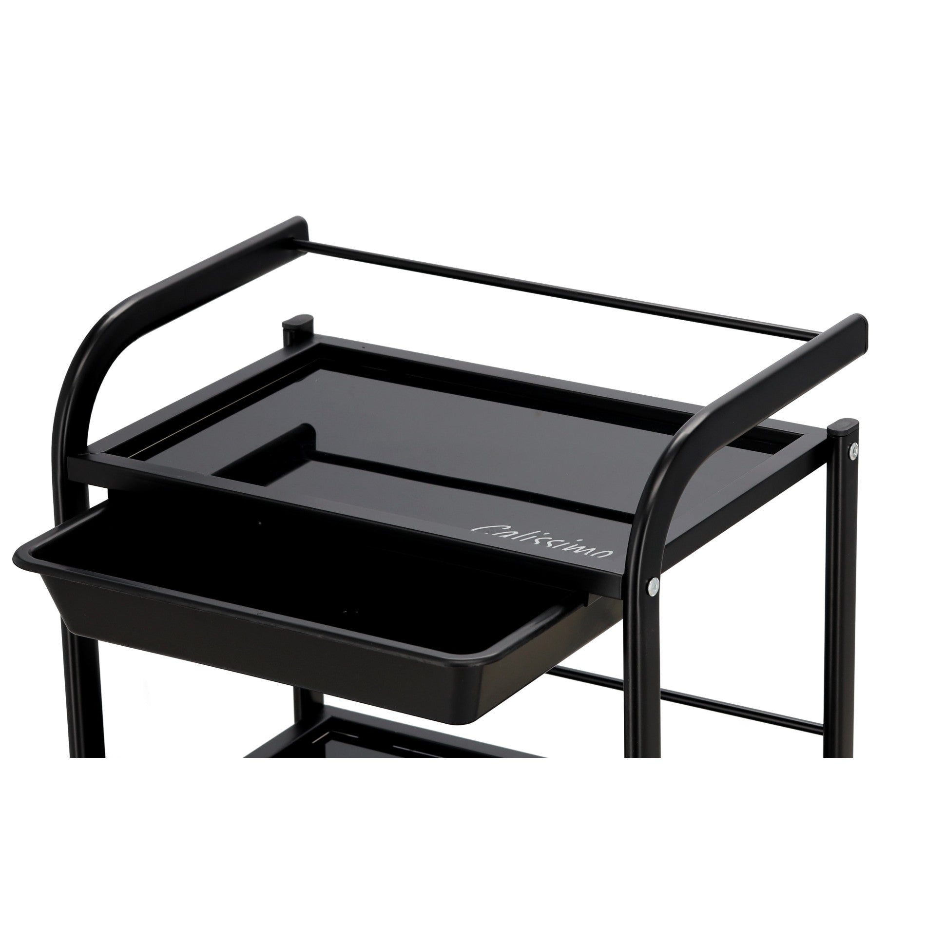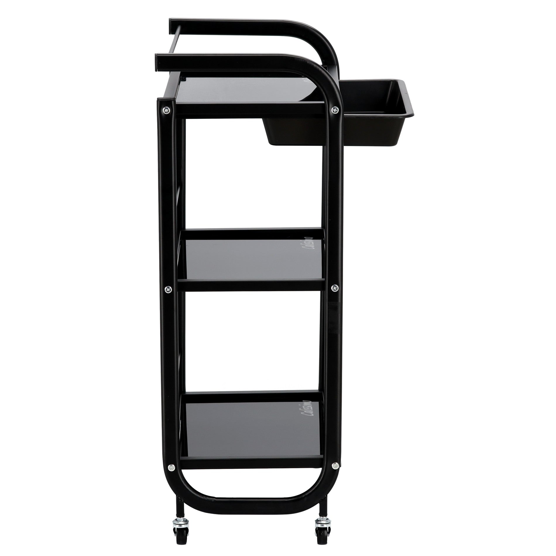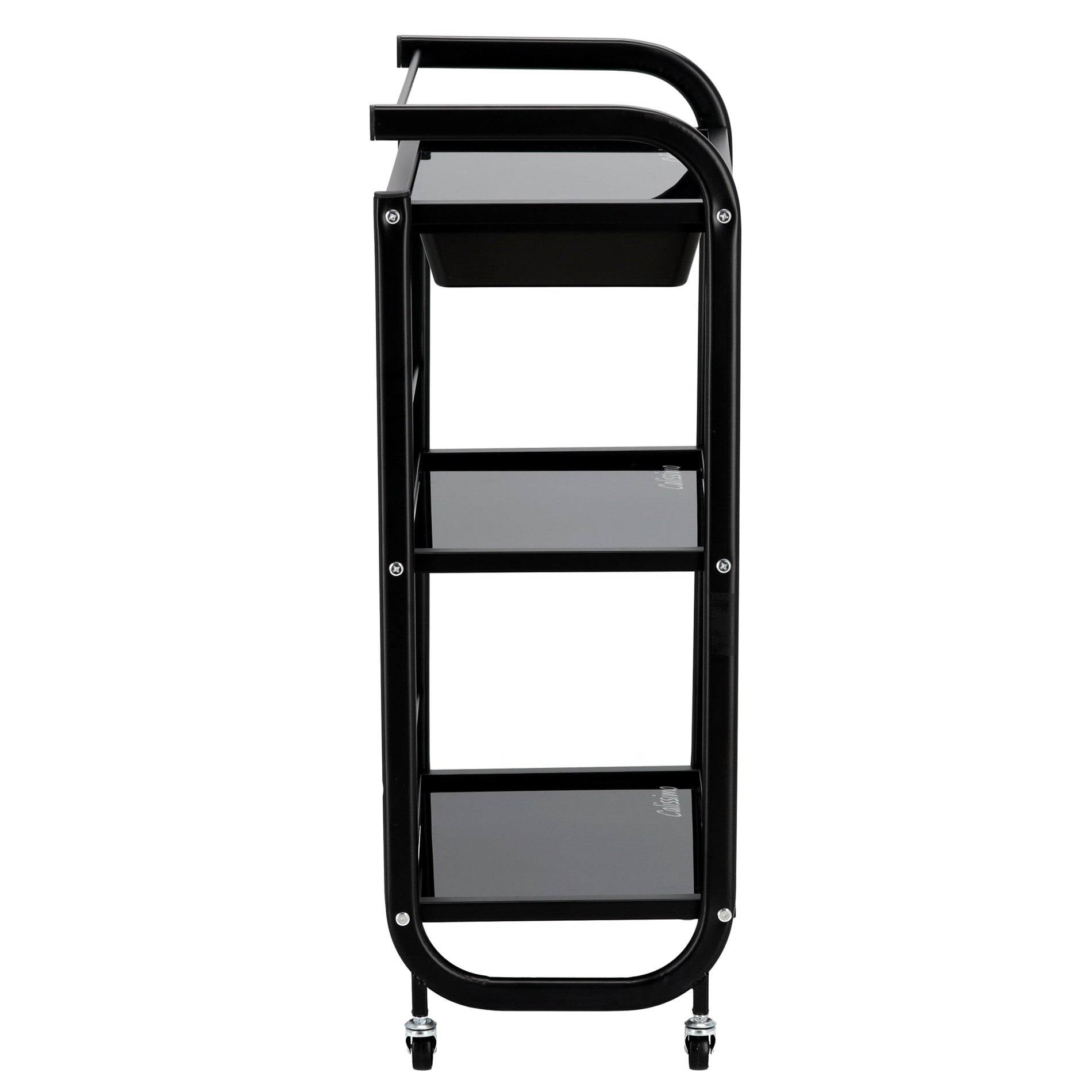 Kosmetologinis staliukas vežimėlis pagamintas iš plieninio korpuso, stiklinių lentynų ir plastikinio stalčiuko, užtikrins pakankamai vietos Jūsų įrangai bei priedams pasidėti. Vežimėlis tvirtas bei stabilus, lengvai valdomas ratukų pagalba. Korpusas dažytas milteliniu būdu.